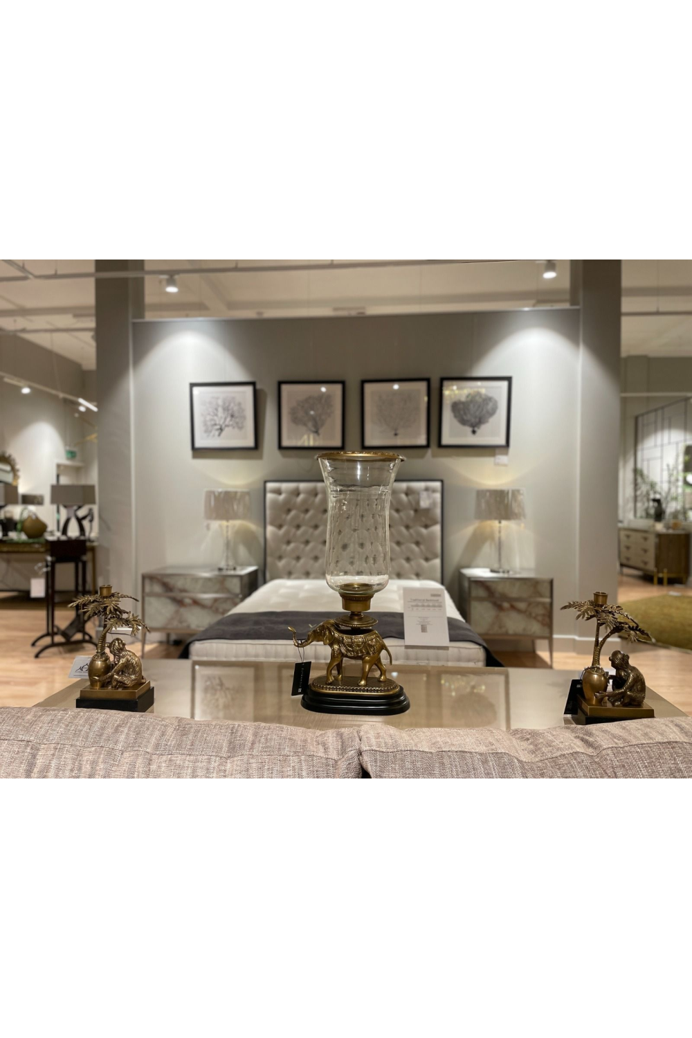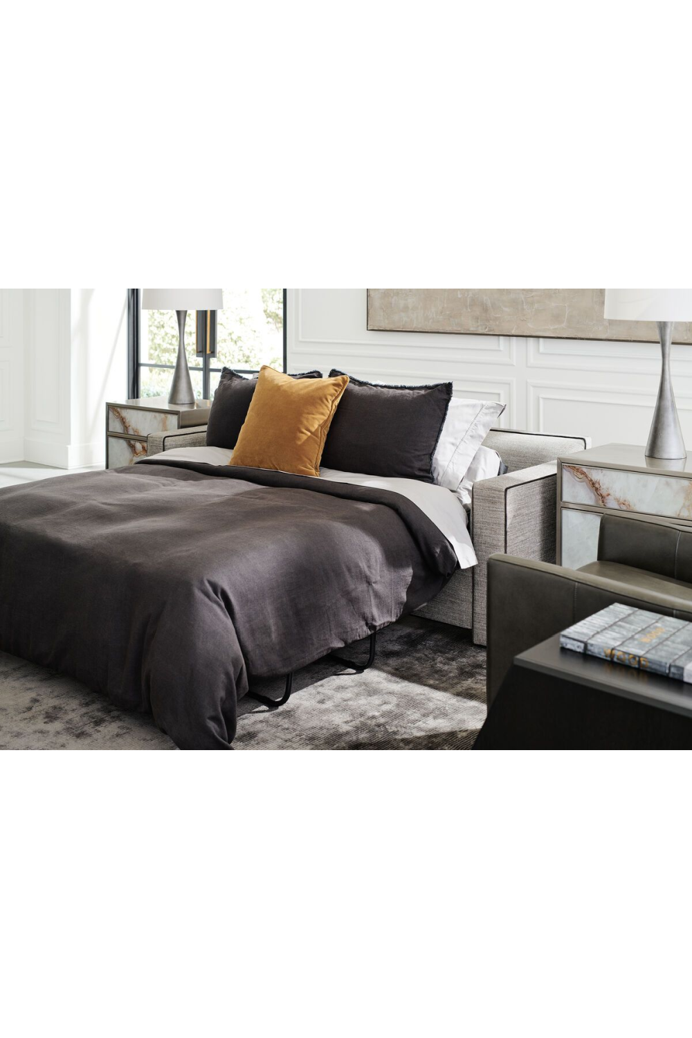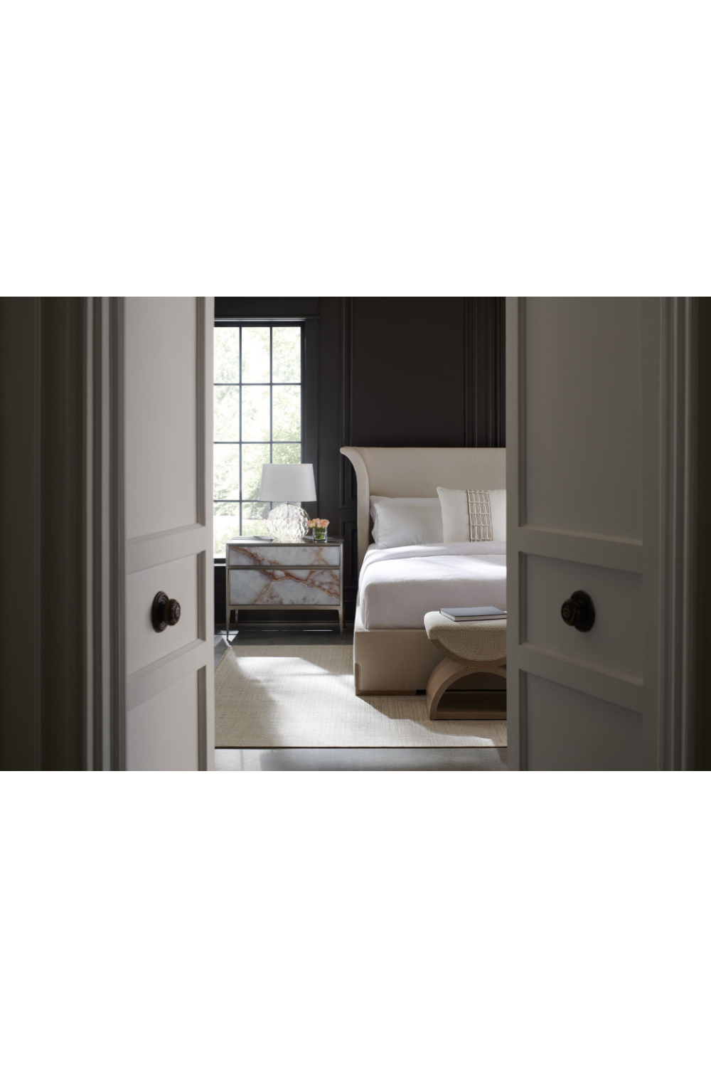 Cuando se trata de una elección de diseño inspirada, este baúl es una verdadera joya. Su aspecto distintivo se inspira en la belleza de las formas perfectamente imperfectas de la piedra natural. Cada una de las dos fachadas de cajón de vidrio presenta un exquisito patrón de ágata pintado que lleva la belleza del exterior al interior. Un marco metálico sobrio y depurado resalta la belleza del patrón de ágata, mientras que sus pies delgados y afilados completan el conjunto. Terminada en un elegante tono de níquel cepillado, esta pieza única ofrece un carisma innegable.