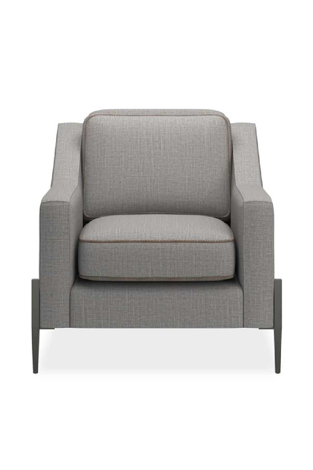 Presentamos el moderno y lujoso sillón Caracole Remix. Su estructura suspendida, patas metálicas afiladas y ribete decorativo de cuero realzan la silueta clásica del brazo recto. Sumérgete en los cojines sueltos y experimenta la perfecta combinación de elegancia atemporal y diseño contemporáneo.